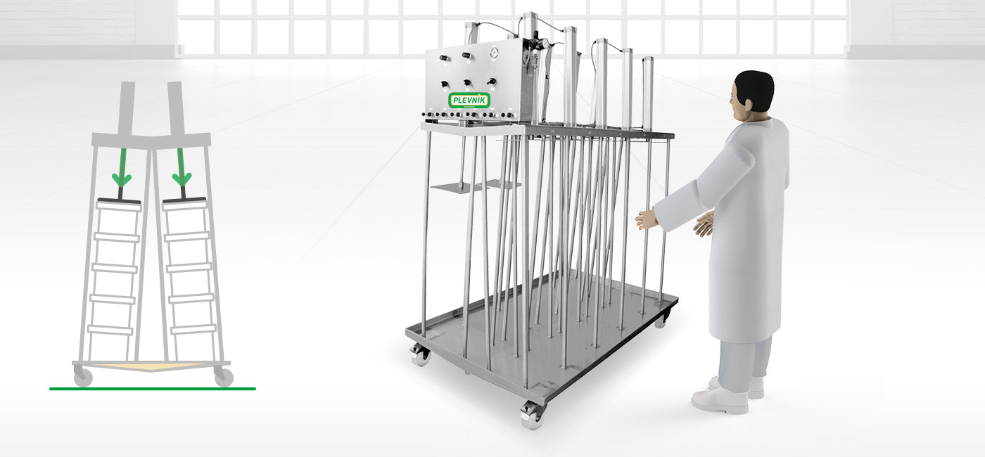 Cheese press PPS-A is a vertical pneumatic cheese press, using compressed air for efficient cheese pressing. Its usually used in larger cheese-making facilities where they use more than one press, for pressing 50-240 kg of cheese mass.